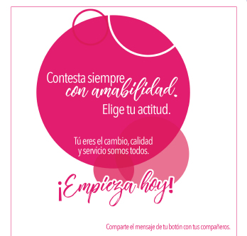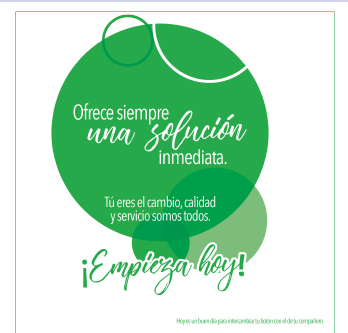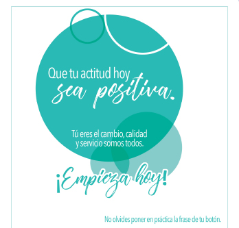 Queremos cambiar, tener una nueva actitud para hacer que el dÃa esté lleno no sólo de correos sino de sonrisas, no sólo de problemas sino de soluciones. Queremos que la calidad de nuestro servicio se note, y que nuestros clientes se sientan satisfechos.     Atiende a tu cliente como te gustarÃa ser atendido. Sirve de corazón, construye confianza y recuerda que, el cambio está en ti.