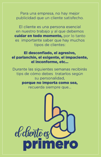 Para una empresa, no hay mejor publicidad que un cliente satisfecho. El cliente es una persona esencial para nuestro trabajo y al que debemos cuidar en todo momento, por lo tanto es importante saber que hay muchos tipos de clientes: