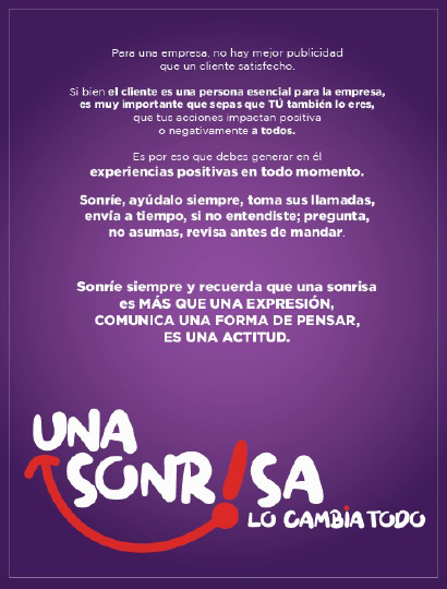 Sonríe siempre y recuerda que una sonrisa es MÁS QUE UNA EXPRESIÓN, COMUNICA UNA FORMA DE PENSAR, ES UNA ACTITUD.